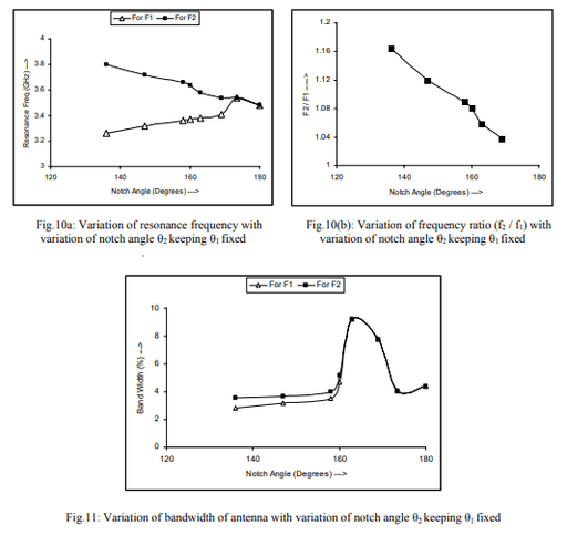 2. Bandwidth Improvement : The bandwidth increases to 9.1% with equal notch angles of 168°, compared to 2.09% for a normal square patch antenna.